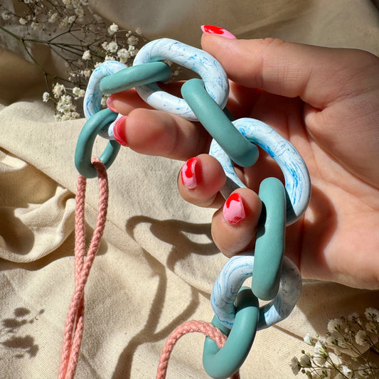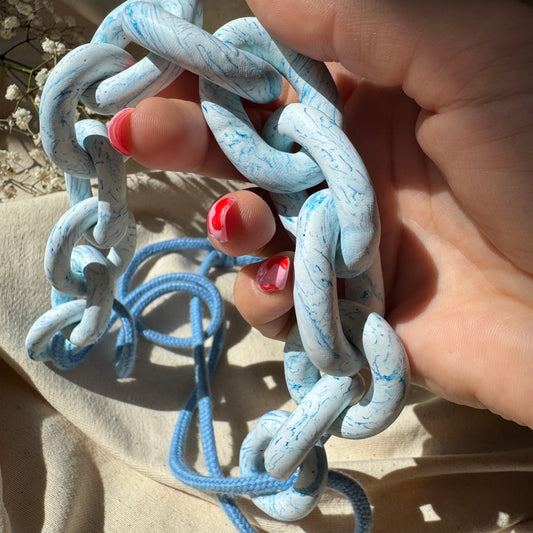 BLUE & WHITE MARBLED CHUNKY LINK NECKLACE