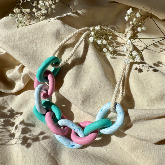 PINK, TURQUOISE AND MARBLE CHUNKY LINK NECKLACE