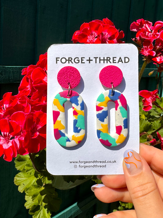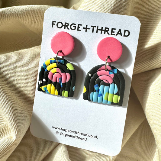ABSTRACT POP ART RAINBOW ARCH EARRINGS