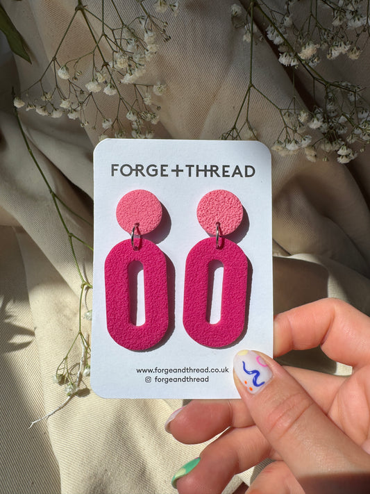 FUCHSIA & PINK TEXTURED OVAL DROP EARRINGS