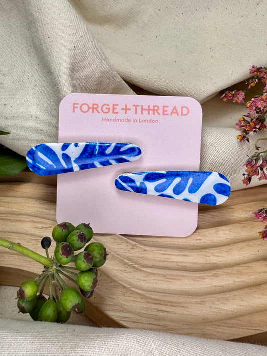 BLUE MATISSE PATTERN HAIR SLIDES