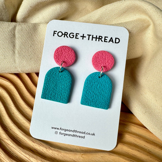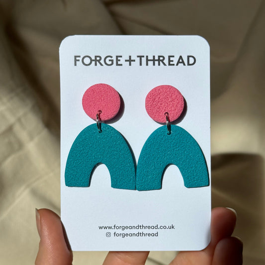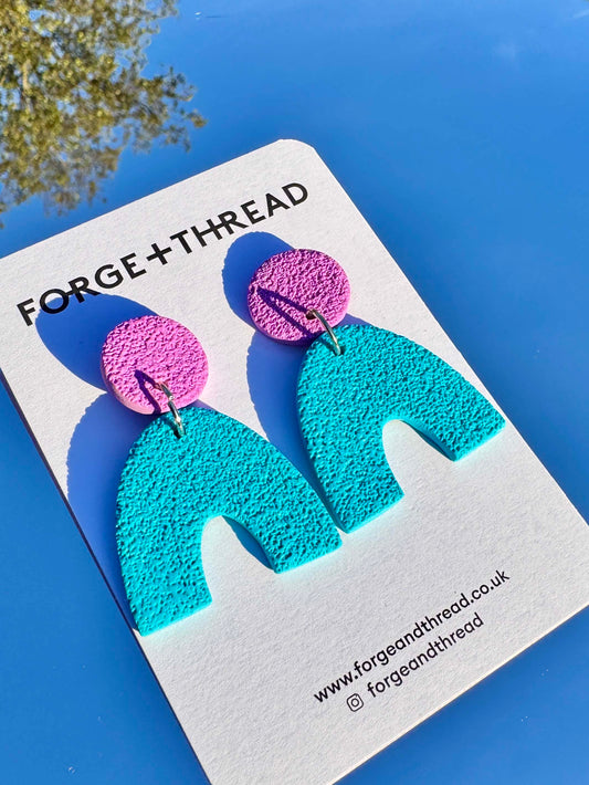 TURQUOISE & PINK TEXTURED ARC EARRINGS