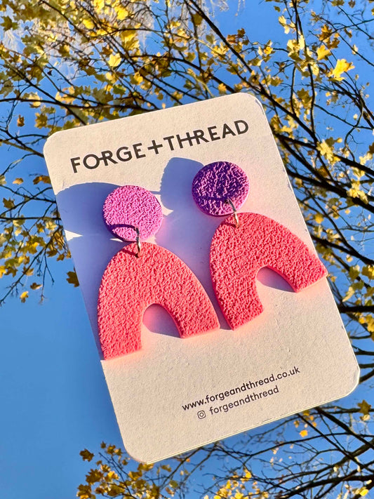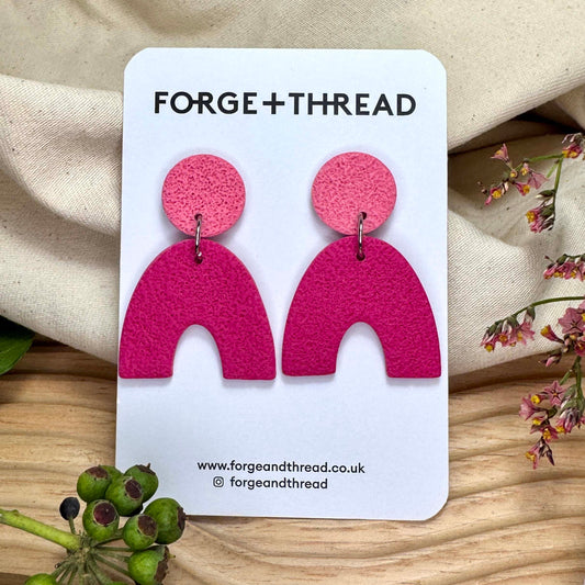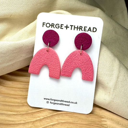 FUCHSIA & PINK TEXTURED ARC EARRINGS