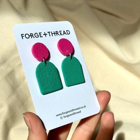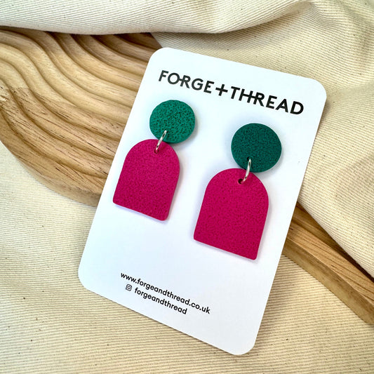 FUCHSIA & GREEN TEXTURED SMALL ARCH EARRINGS