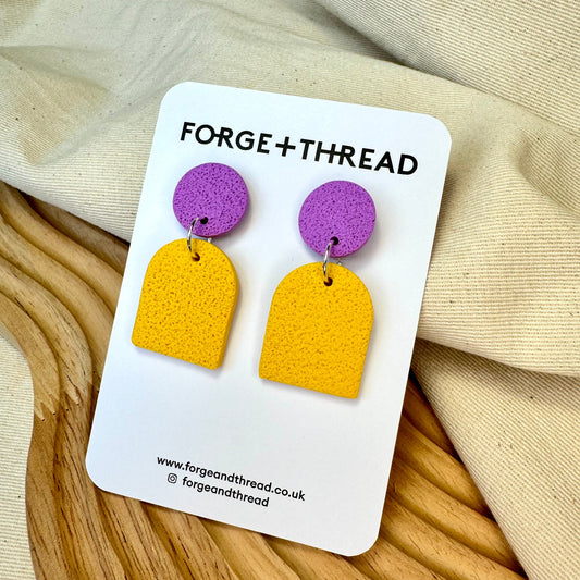 YELLOW & LILAC TEXTURED SMALL ARCH EARRINGS