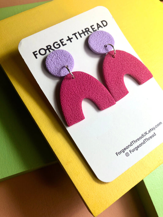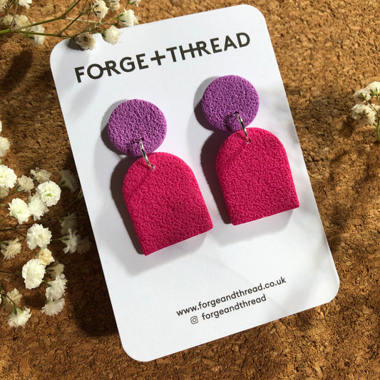 FUCHSIA & LILAC TEXTURED SMALL ARCH EARRINGS
