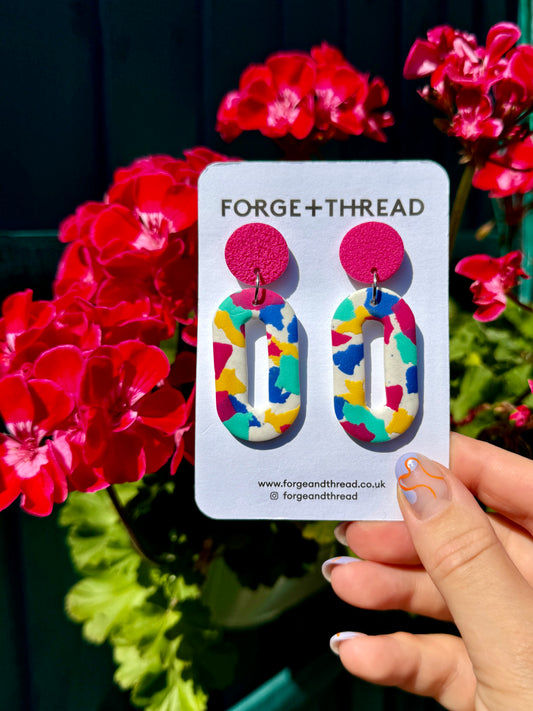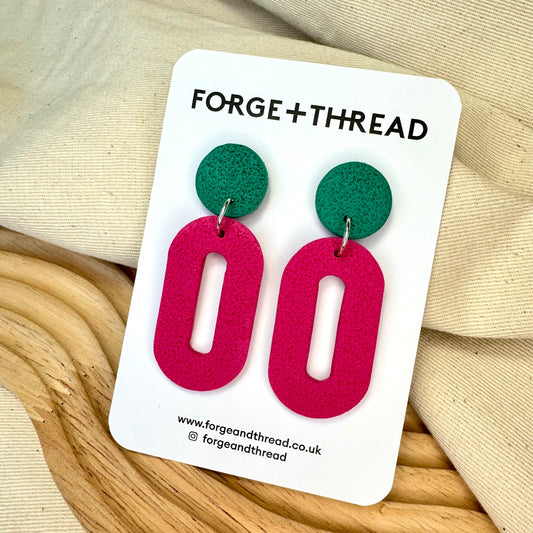 FUCHSIA & GREEN TEXTURED OVAL DROP EARRINGS