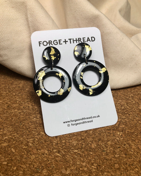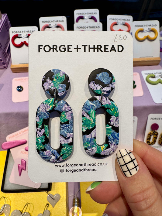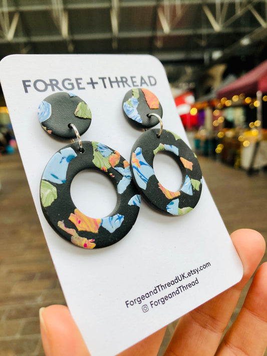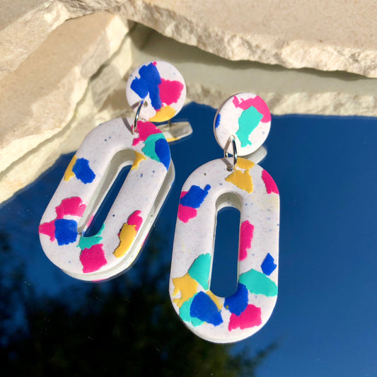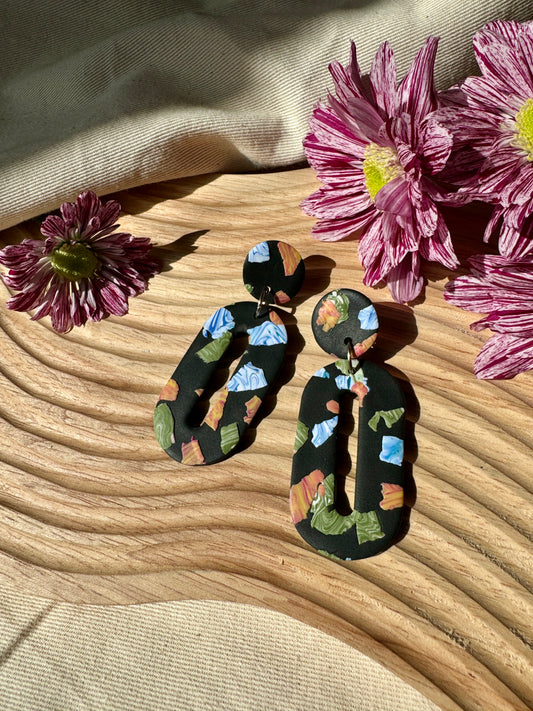 NEW BLACK TERRAZZO OVAL EARRINGS