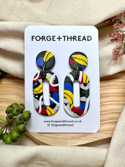 MULTICOLOUR LEOPARD PATTERN OVAL DROP EARRINGS