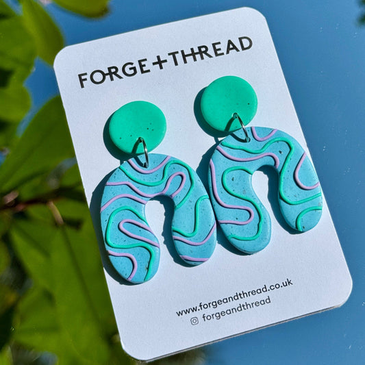 TURQUOISE WIGGLE WONKY ARCH EARRINGS