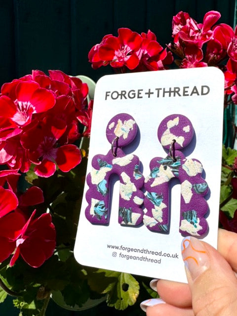 PURPLE TERRAZZO SCALLOPED ARCH EARRINGS