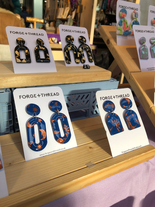 NIGHT SKY OVAL DROP - NAVY & COPPER