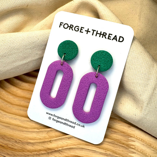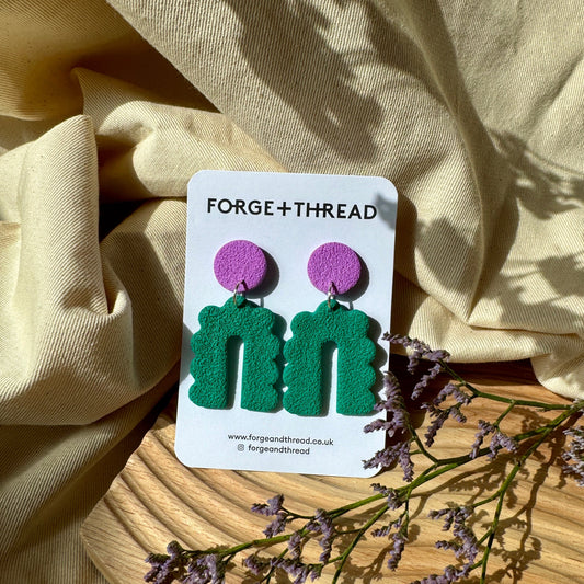 GREEN & LILAC TEXTURED SCALLOPED ARCH EARRINGS