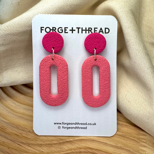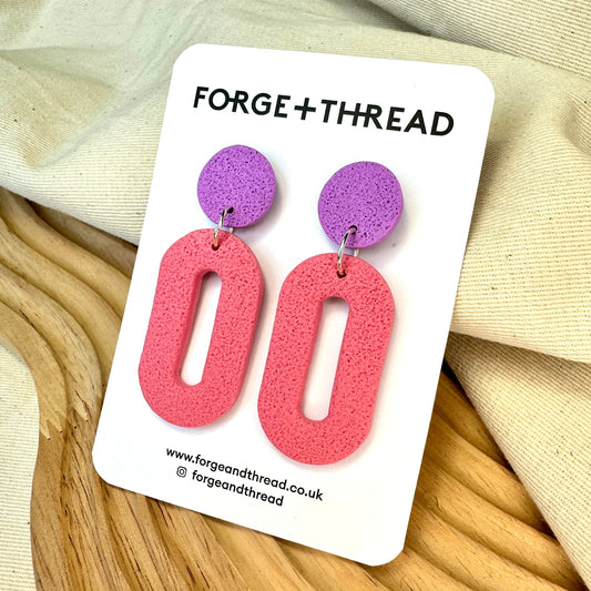 LIGHT PINK & LILAC TEXTURED OVAL DROP EARRINGS