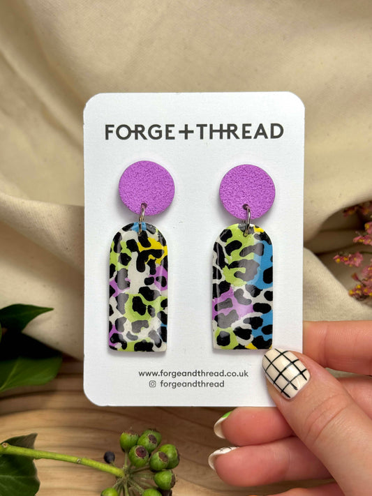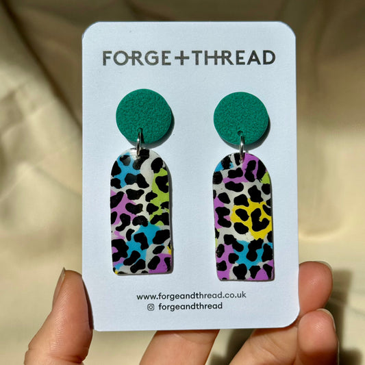 MULTICOLOUR LEOPARD PATTERN LONG ARCH EARRINGS