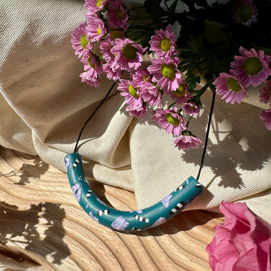 BLUE ABSTRACT STRIPE ARCH NECKLACE