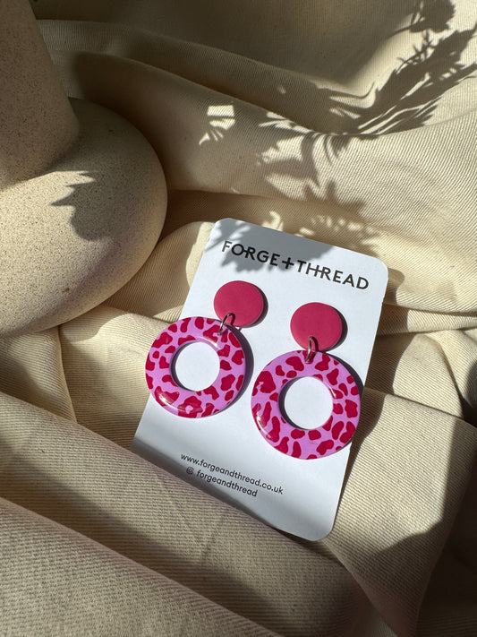 LIGHT PINK & LILAC TEXTURED OVAL DROP EARRINGS