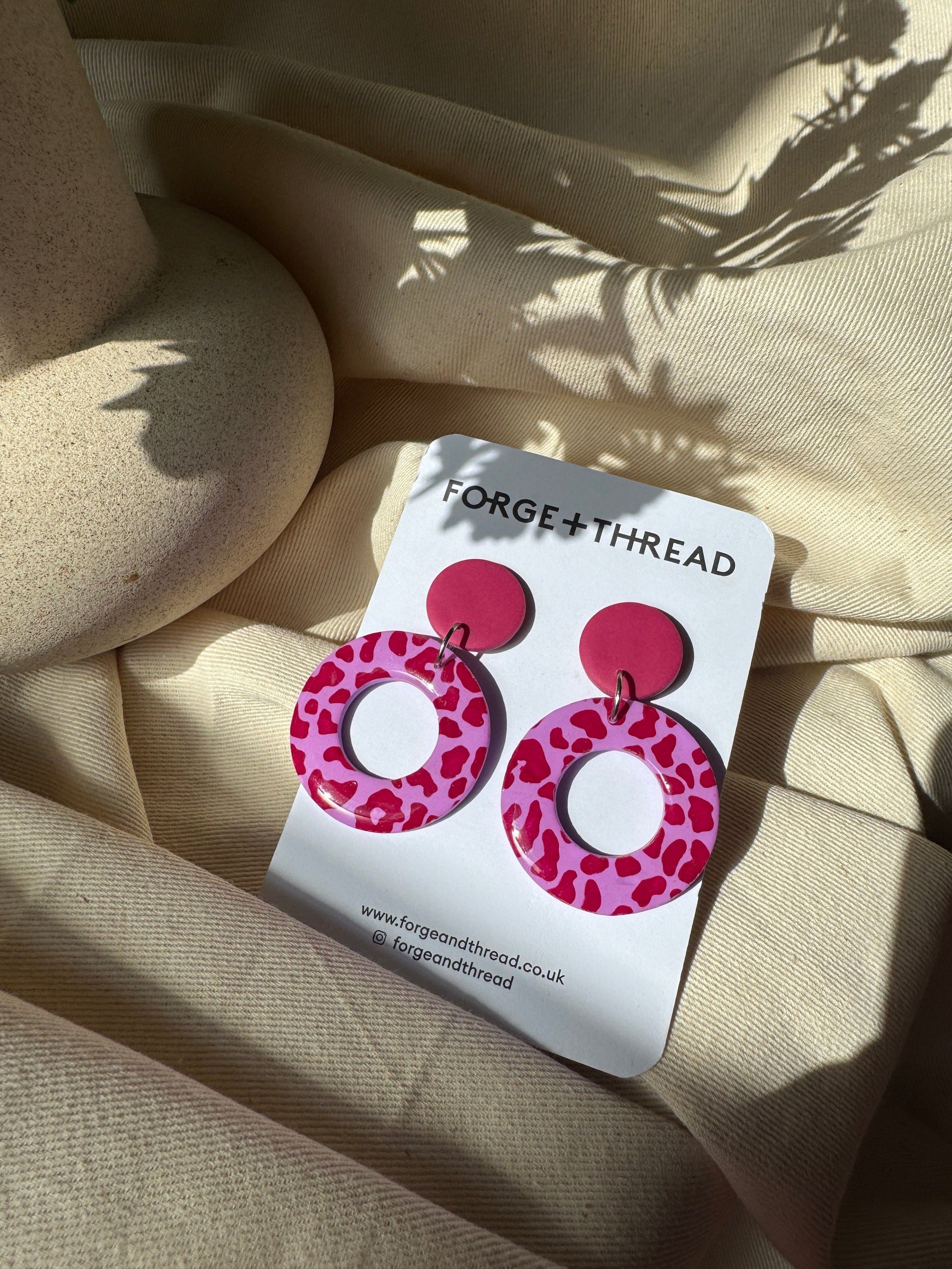 NEW! Hand painted leopard print polymer clay earrings on a marbled base