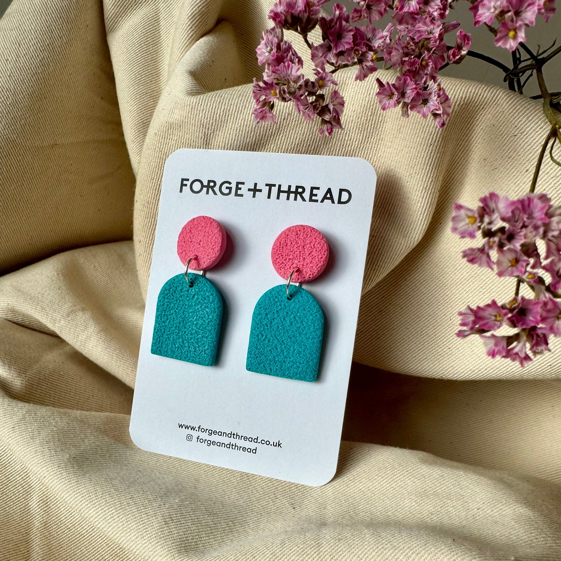 TURQUOISE TEXTURED SMALL ARCH EARRINGS